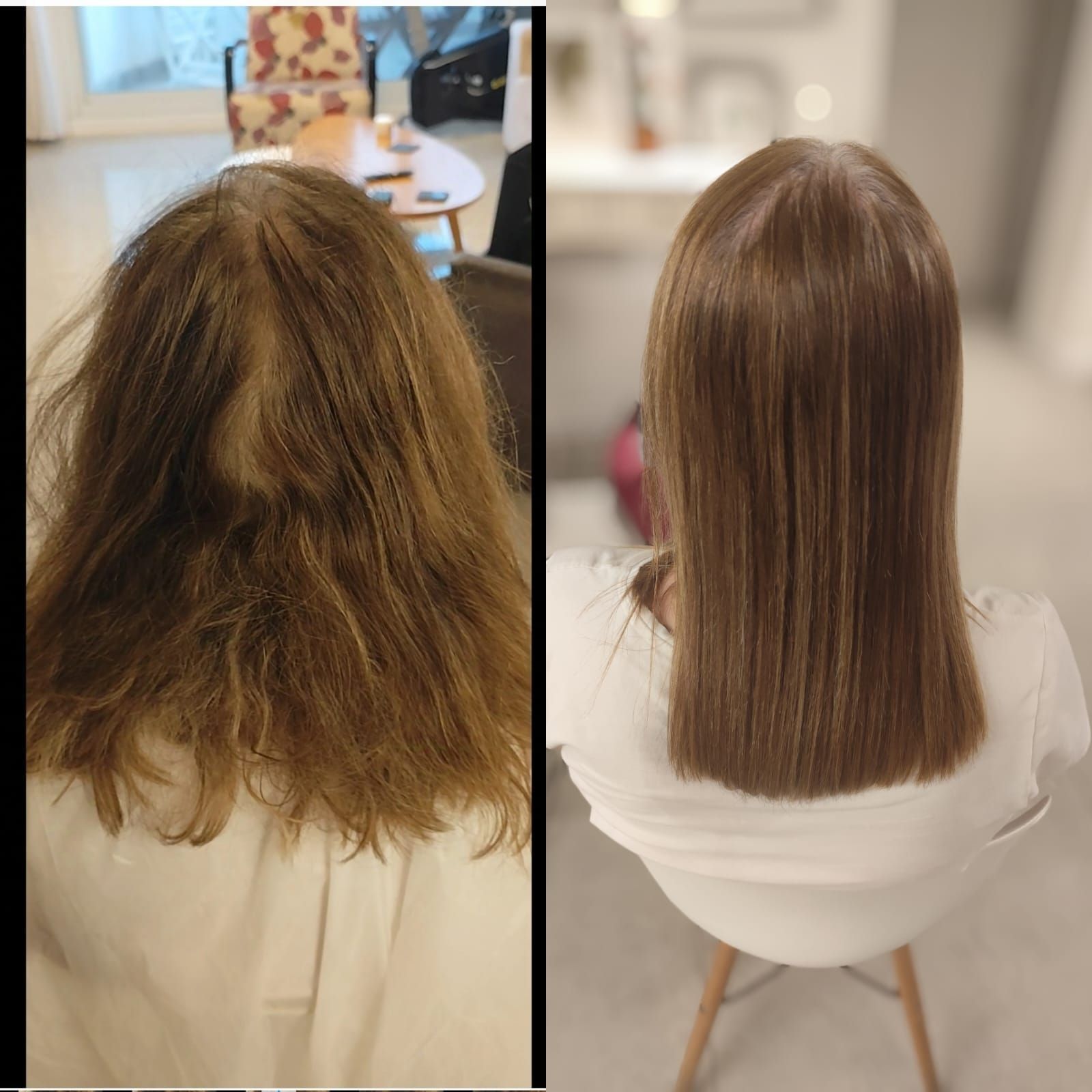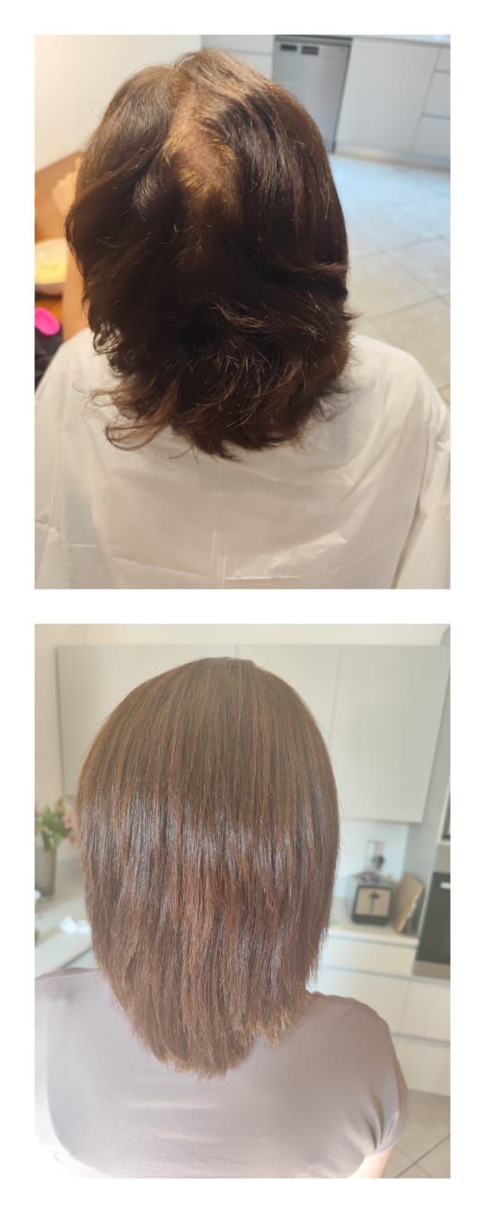 החלקה אורגנית זו החלקה מאושרת משרד הבריאות ללא פורמלין ללא ריח שעשויה מחלבונים לשיקום השיער. מתאימה לנשים מניקות, ילדות ונערות. ומתאימה לכל סוגי השיער: